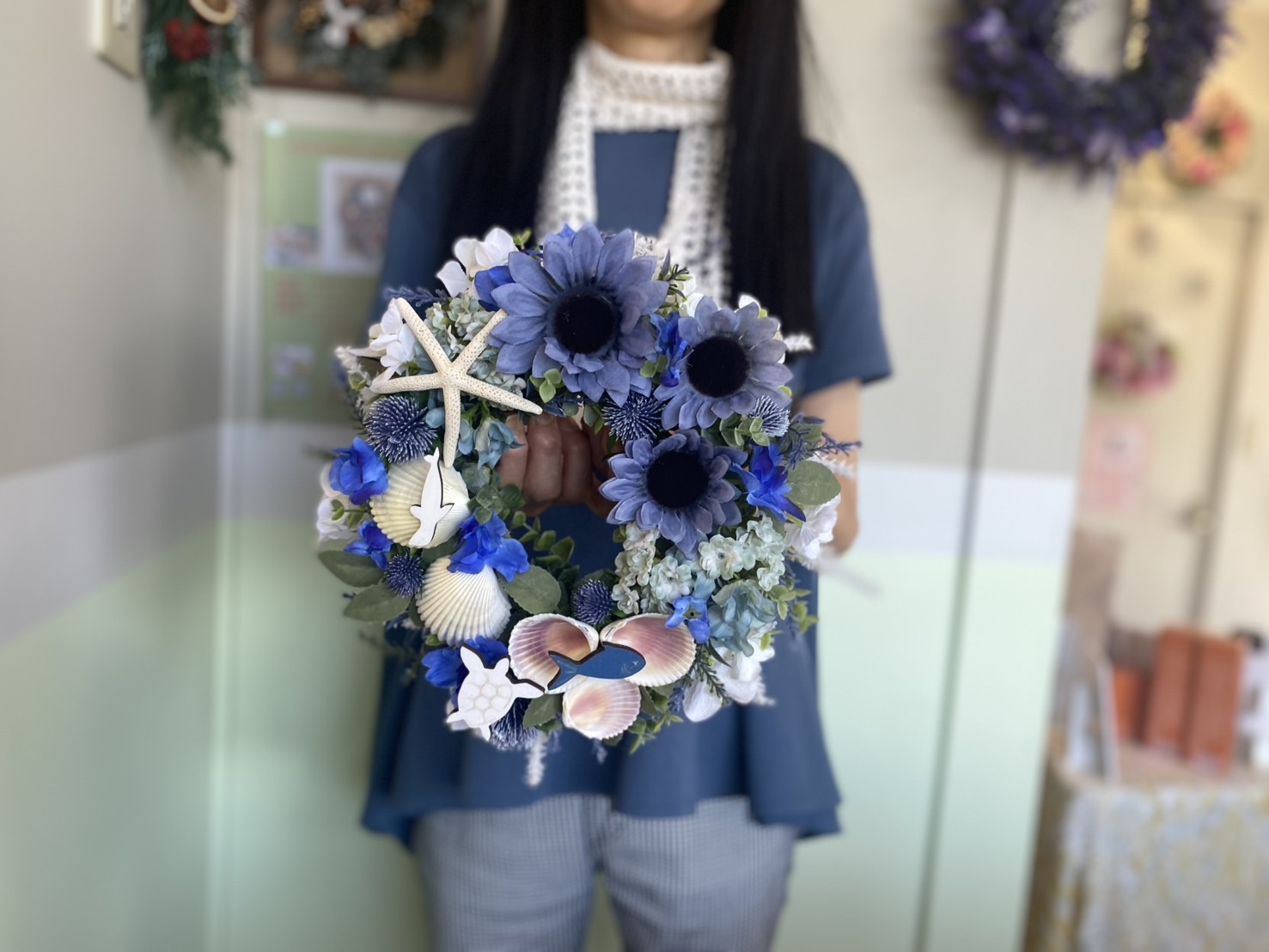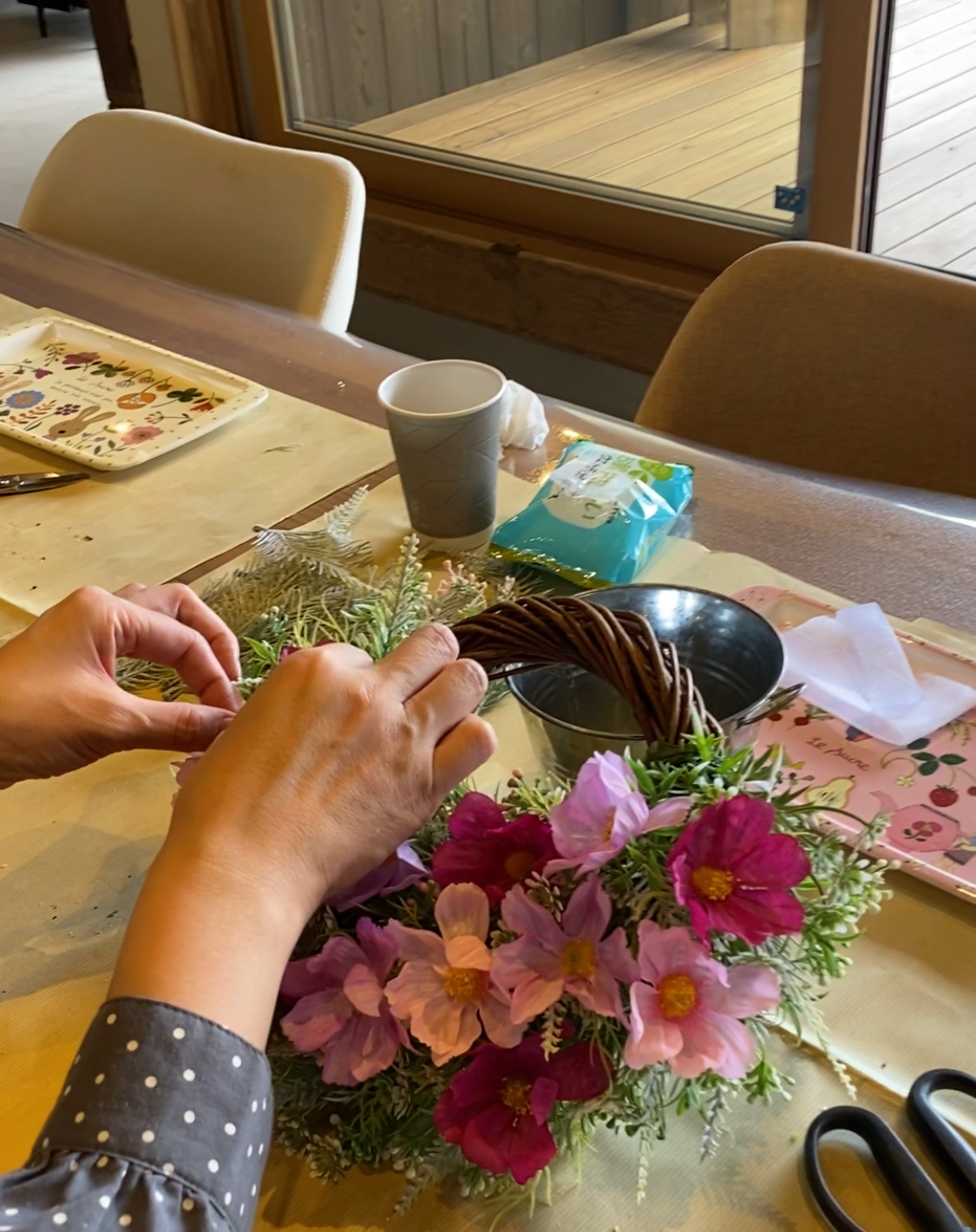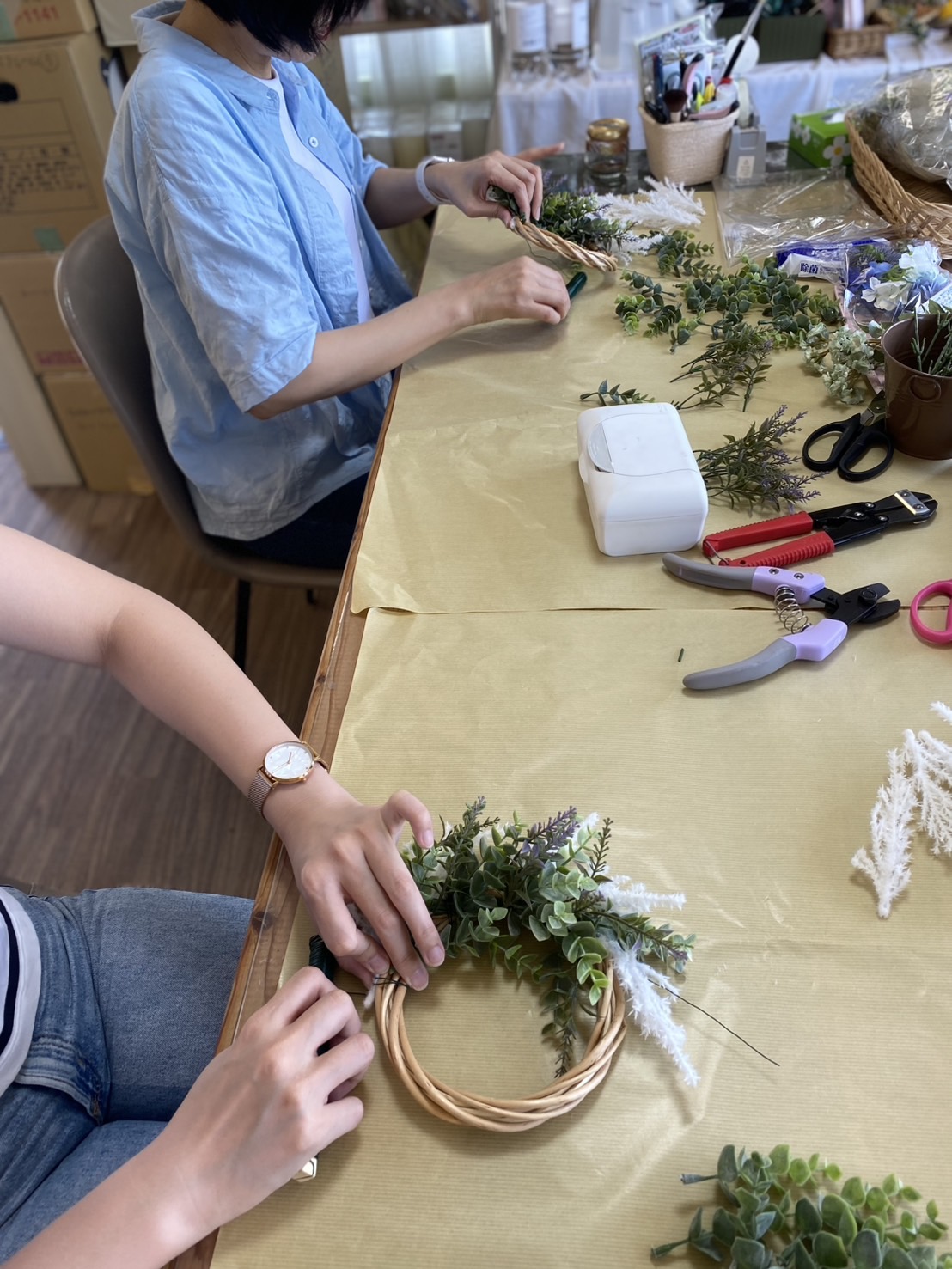 リースを作る時間は癒しのひと時となります。また自分で作ったリースを飾って眺めるのも