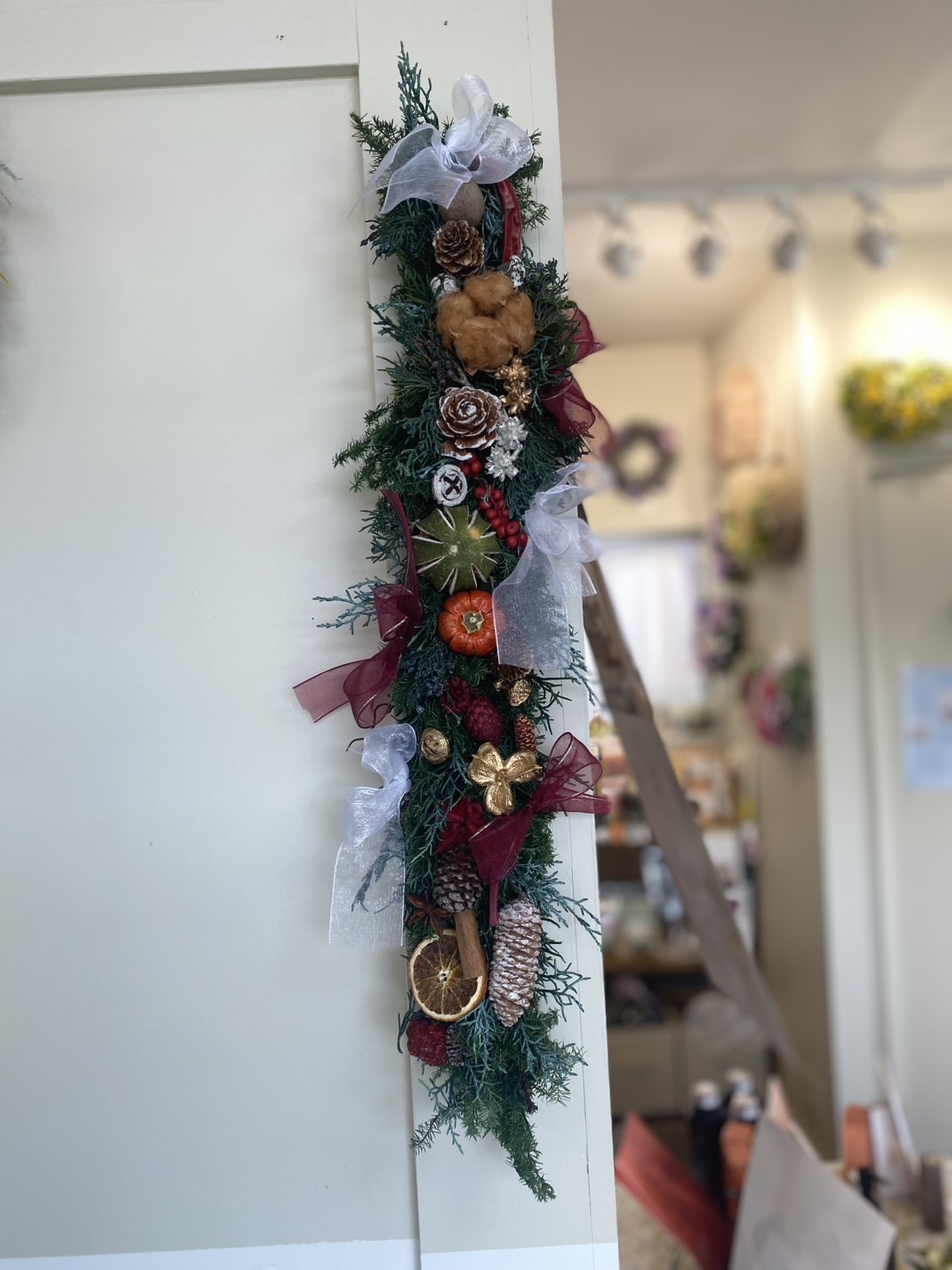 〇クリスマスロングスワッグリース作り
