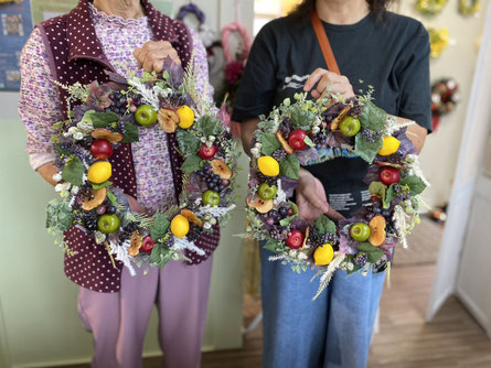 リクエスト教室 秋のフルーツリース作り リクエスト教室 秋のフルーツリース作り 赤りんご🍎青りんご🍏葡萄🍇レモン🍋 オリーブにのぶどうの実 秋の実りがたっぷりデコレーションされたリースで 収穫の秋だなぁ〜と 感じるリースです 何年か前にデザインしたリースなのですが、 久しぶりに脚光浴びて嬉しいです♪ 今月2回目のレッスンをありがとうございます❣️ N &Kさま、いつもありがとうございます♪ 来月もクリスマスロングスワッグご予約ありがとうございます♪ 来月もご一緒に頑張りましょうね♪ tagPlaceholderカテゴリ: