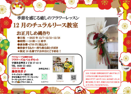そんな年の締めくくりのナチュラルリース教室「お正月しめ縄飾り」は